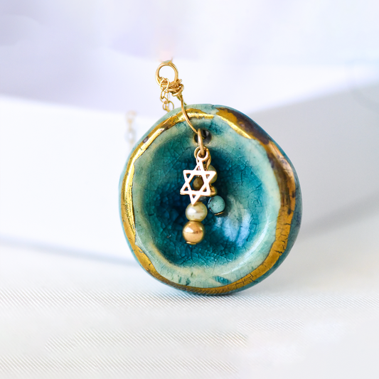 Heart of Gold & Blue Jerusalem Pendant