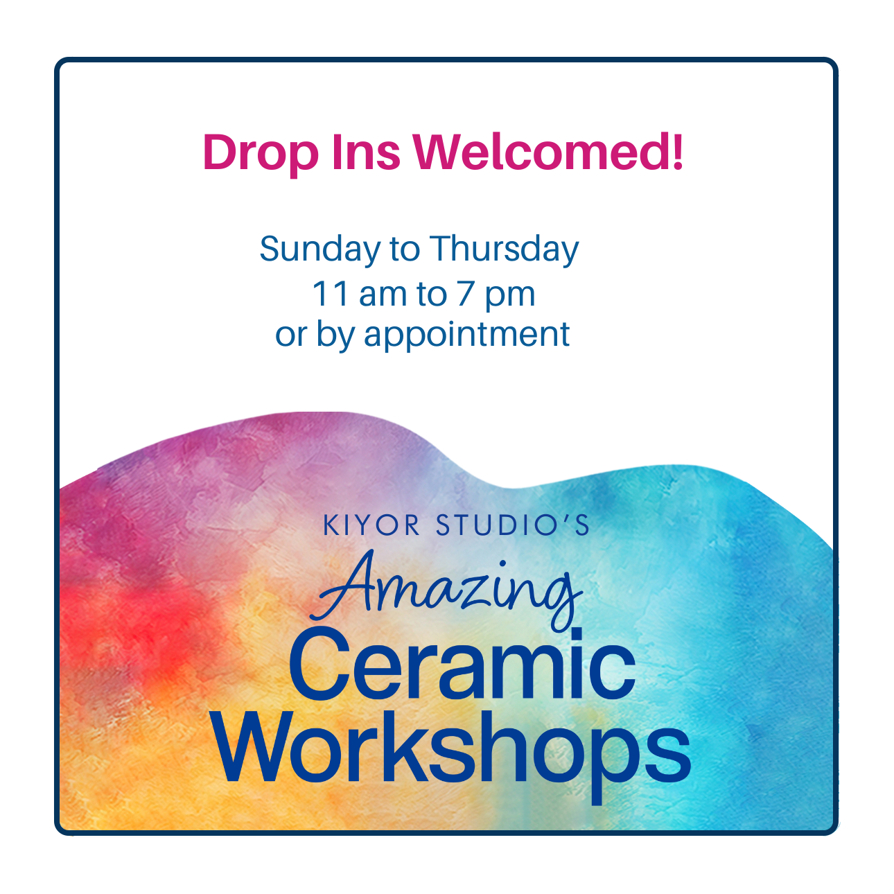 At Kiyor Studio, our workshops go beyond art – they’re a fun, spiritual, and meaningful experience. Whether creating in clay or painting artisanal pottery, you’ll leave with personal insights, a sense of fulfillment, and your own beautiful, functional art. It’s better than therapy, a lot cheaper, plus you get to take home the unique piece of art that only you could create.