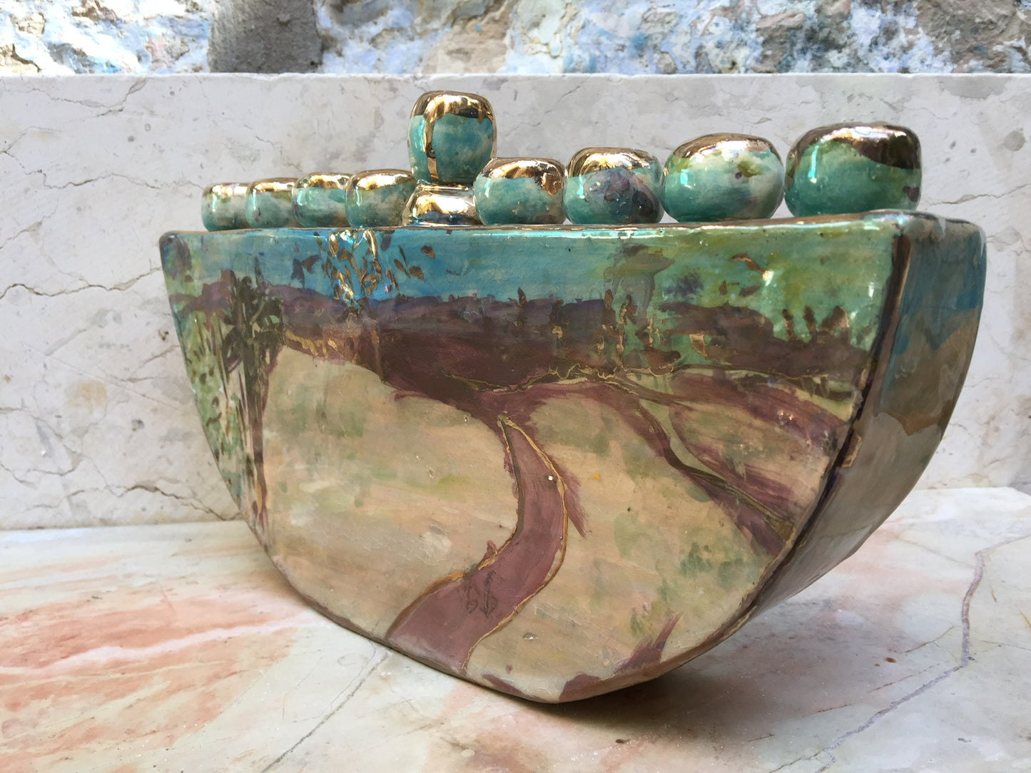 This one of a kind piece is an original painting on ceramic, destined to appreciate in value over time and become a cherished family heirloom.
